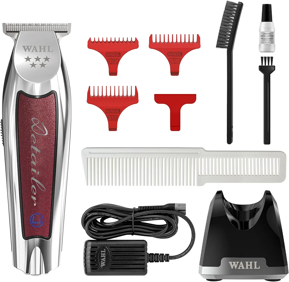 Kit de tondeuse professionnelle de 11 pièces, comprenant la tondeuse Detailer Li, trois peignes de guidage (½, 1, 1½), protège-lame, support de charge, transformateur, 2 brosses de nettoyage, huile de lame